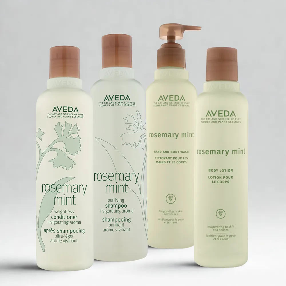 Aveda Rosemary Mint ne prend pas seulement soin de la peau et des cheveux, mais offre une expérience complète pour tout le corps. Le parfum incomparablement revitalisant des produits, avec un arôme de romarin biologique certifié, de menthe poivrée et de menthe verte, est conçu pour éveiller les sens et améliorer la concentration.
