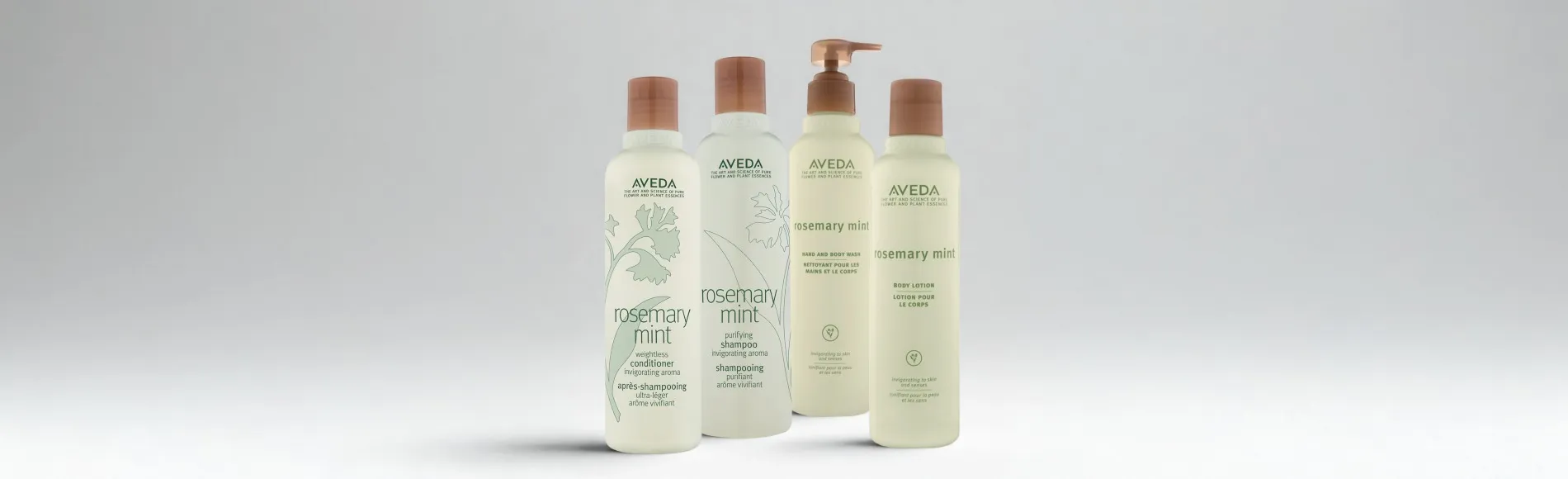 Découvrez Rosemary Mint d’Aveda, la gamme de soins capillaires et corporels qui éveille et ravit tous les sens.
