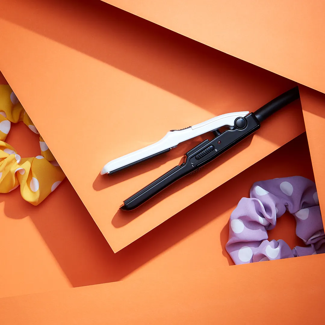 Malgré sa faible puissance, ce mini-lisseur compact est prêt à l’emploi en peu de temps. Avec une température constante de 200 °C et des plaques de 13 mm, tu peux coiffer tes cheveux mèche par mèche.