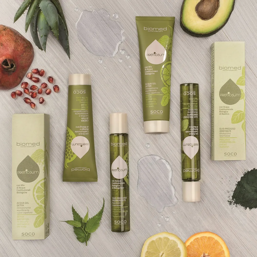 La ligne booster comprend deux huiles, une crème et un gel, utilisés avant ou après l’application d’autres produits pour en intensifier l’effet. Cela garantit un soin optimal. Que ce soit pour un cuir chevelu irrité, des pellicules ou des cheveux secs, les produits Biomed Pretiosum offrent un soin et une régénération maximum.