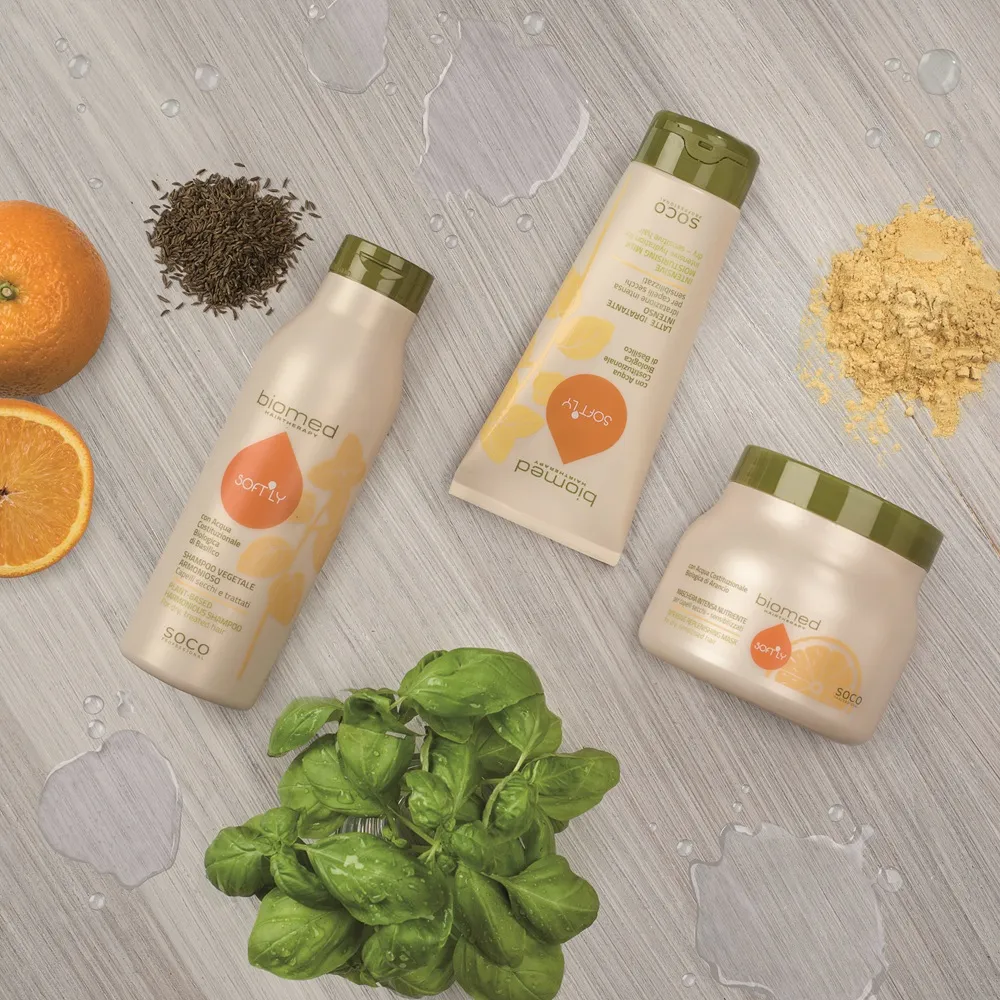 Les ingrédients des produits Biomed Softly sont en grande partie entièrement naturels et biologiques, ce qui les rend particulièrement doux. Par exemple, l’extrait de chardon d’âne, l’eau cellulaire de basilic et l’huile de nigelle offrent une performance de soin exceptionnelle. Ensemble, le shampoing, l’après-shampoing et le masque agissent de manière régénérante et fortifiante.