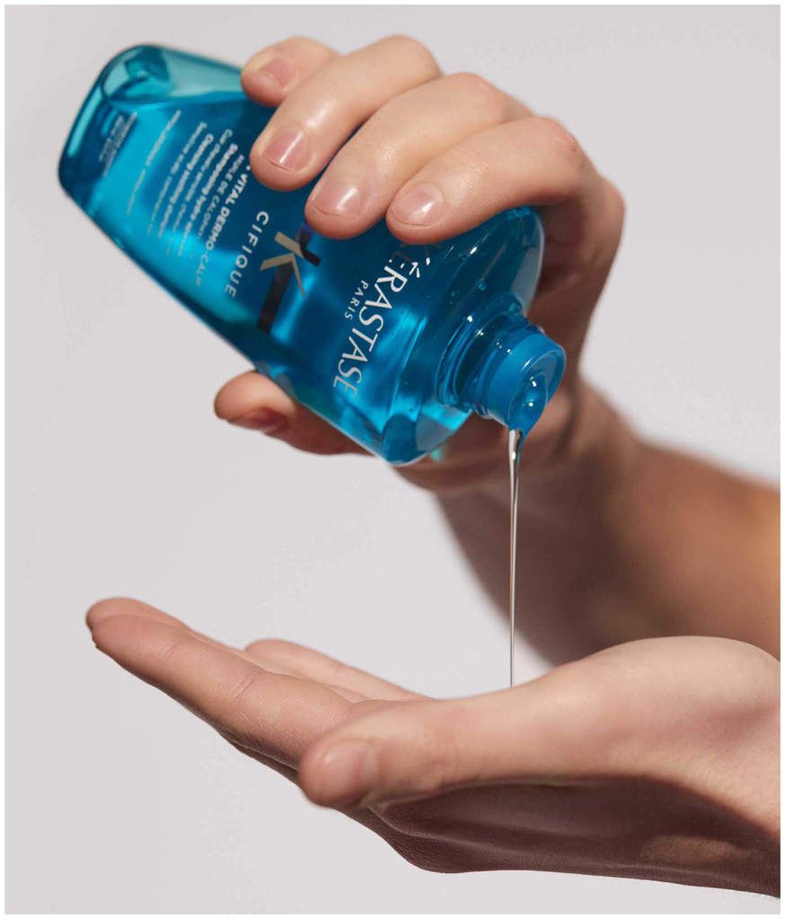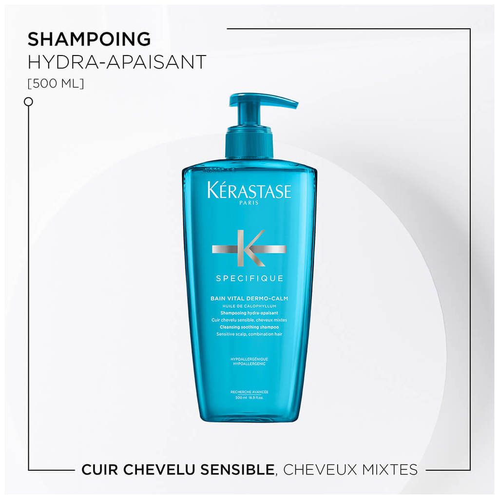Bain Vital Dermo-Calm de Kérastase Spécifique est un shampooing nourrissant pour le cuir chevelu sensible et les cheveux normaux à légèrement gras. La formule hypoallergénique ne contient pas de silicone et rééquilibre le cuir chevelu.