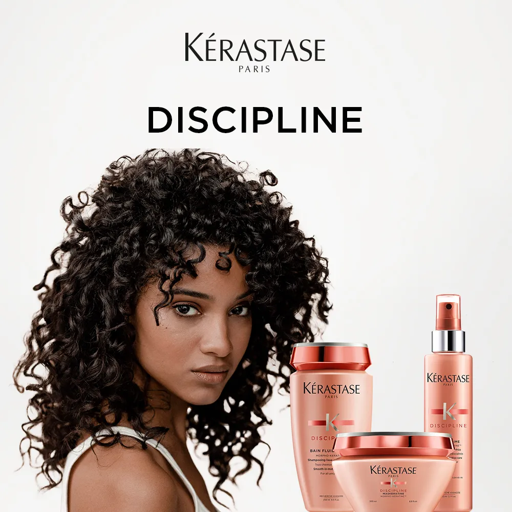 Kérastase Discipline est la ligne de soins de luxe pour les cheveux indisciplinés et bouclés. Avec la plus forte concentration en pro-kératine de toutes les gammes Kérastase, les produits Discipline lissent la fibre capillaire pour des cheveux sains, doux et disciplinés.