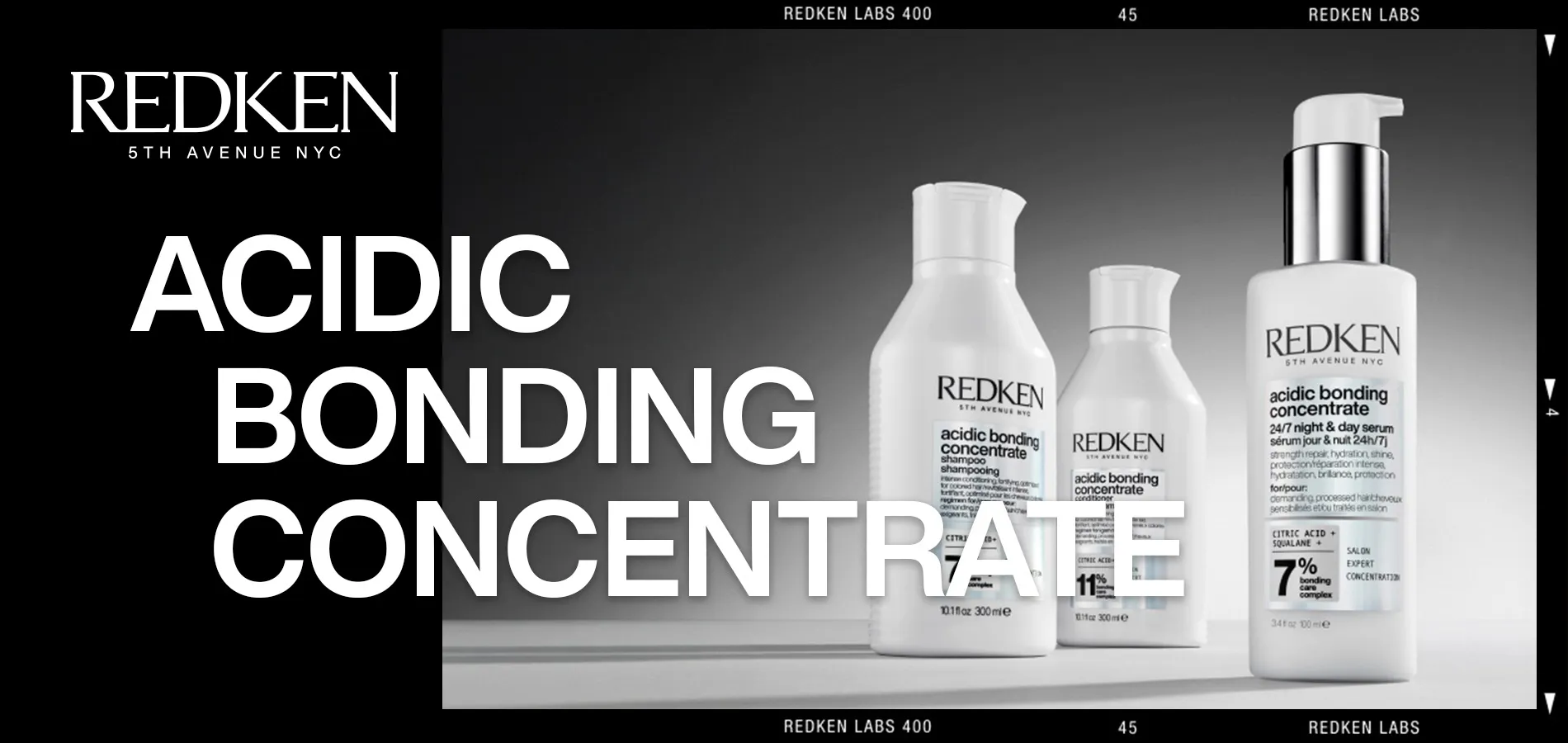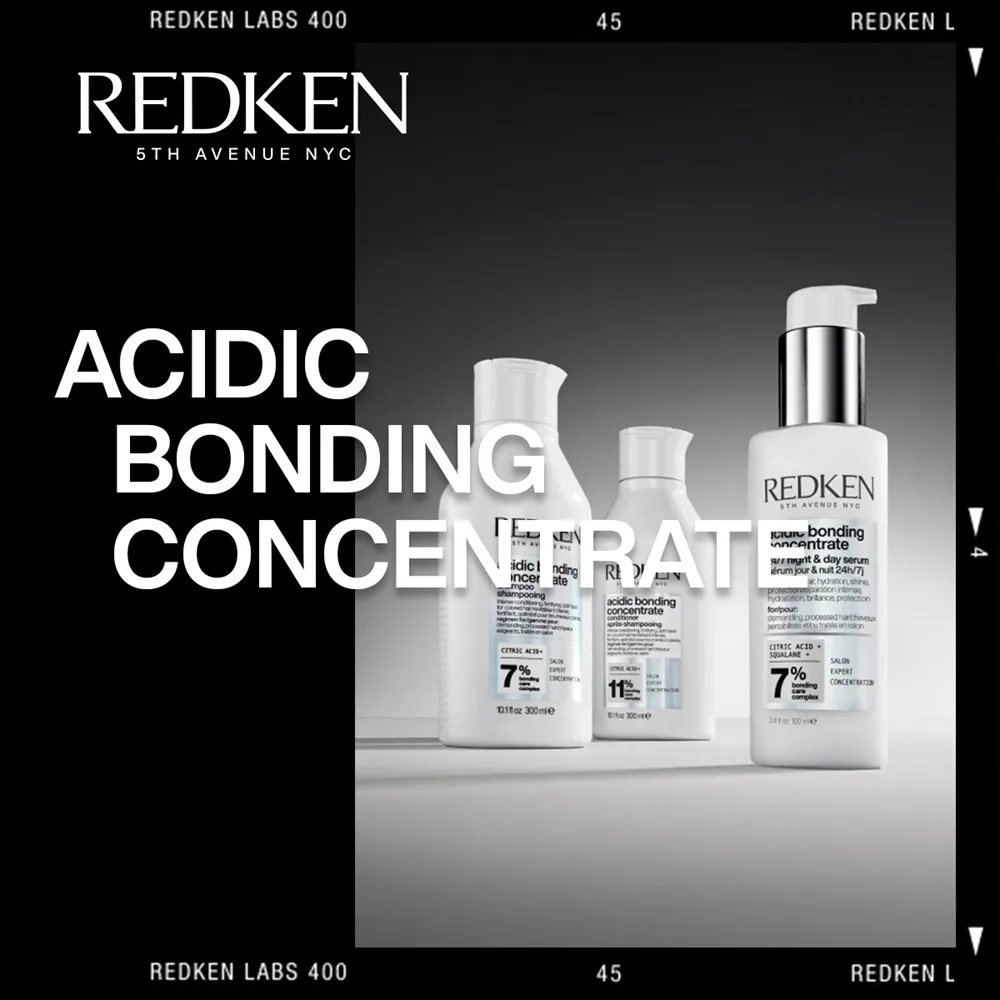 La gamme de soins Redken Acidic Bonding Concentrate se compose du shampooing Redken Acidic Bonding Concentrate, de l'après-shampooing et du Leave-In Concentrate final. Les trois produits sont équipés du Bonding-Care-Komplex et contiennent de l'acide citrique. La formule réparatrice de Redken ABC renforce les liaisons sulfitaires affaiblies dans les cheveux et minimise la casse. Le shampooing Redken Acidic Bonding Concentrate contient 7 % du Bonding Care Complex, l'après-shampooing en contient 11 % et le traitement Leave-In 5 %.