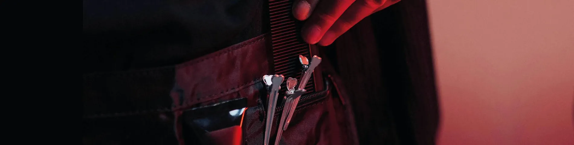 Certains stylistes préfèrent des trousses compactes avec seulement quelques sangles, se concentrant sur l’essentiel, tandis que d’autres aiment avoir davantage d’outils directement à portée de main et choisissent donc une trousse ventrale ou une trousse-tablier avec de nombreux compartiments, sangles et poches zippées.