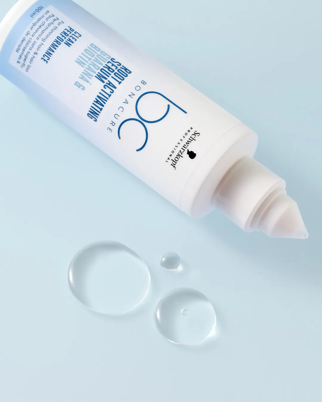 Le Shampooing Activateur de racines BC Scalp de Schwarzkopf , enrichi avec du Tartrate de Carnitine, de la Taurine et de l'Echinacéa est un shampooing pour cheveux clairsemés qui réduit la chute de cheveux non pathologique. Il nettoie en douceur et active les racines, ce qui améliore progressivement la qualité des cheveux. Ceux-ci reçoivent une nouvelle vitalité et retrouvent un aspect sain. Le Shampooing Activateur de racines est la première étape du programme Scalp Genesis Activateur de racines, qui se poursuit avec le Sérum Activateur de racines et avec la Mousse Densifiante.