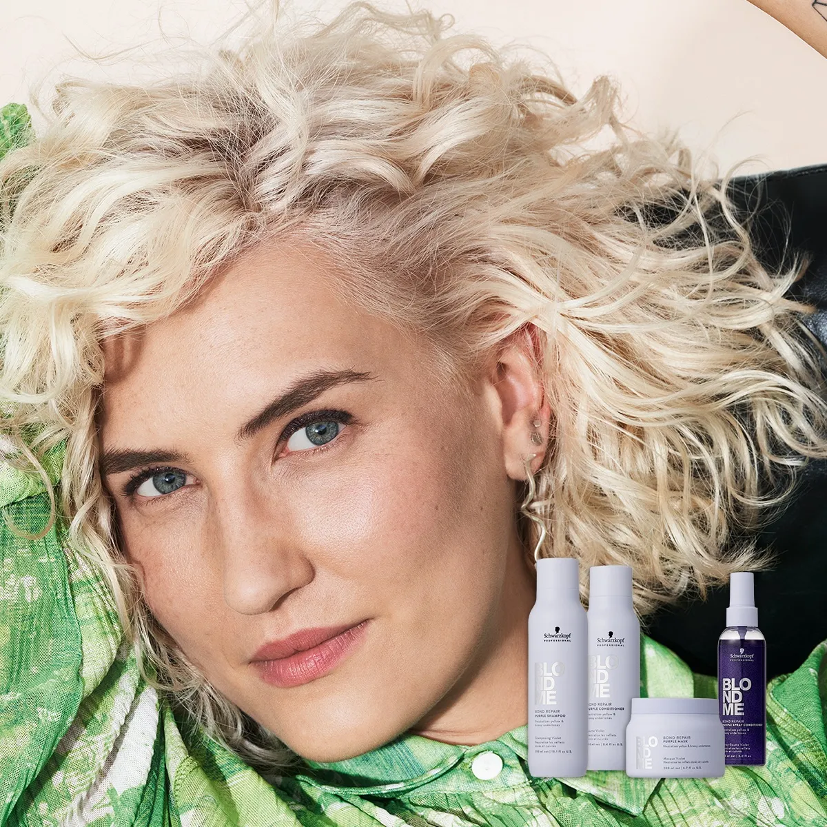 BLONDME répond aux besoins de toutes les blondes. Il existe des produits de soin pour cheveux blonds ainsi que des décolorations et des toners. BLONDME est donc la réponse ultime à tous les besoins des blondes. Cela va de la poudre décolorante BLONDME Premium Lightener 9+, aux toners BLONDME pour un blond personnalisé, jusqu’aux soins individualisés avec le BLONDME Bond Repair Purple Shampoo pour les blonds froids, ainsi que l’après-shampoing et le masque.