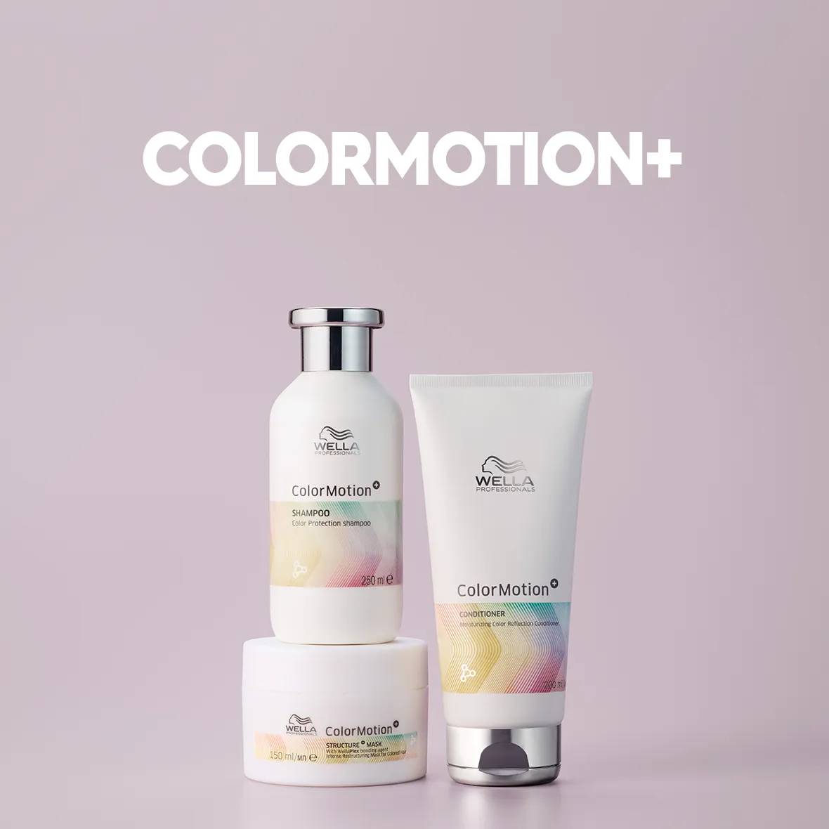 La formule de soin du shampooing, de l’après-shampooing et du masque est parfaitement adaptée à la gamme de couleurs Wella. Elle contient à la fois les meilleures technologies de l’univers couleur Wella ainsi que la technologie WellaPlex pour créer de nouvelles liaisons dans le cheveu. La combinaison de ces technologies éprouvées fait de Color Motion+ une ligne à la formulation unique et multifonctionnelle : elle assure la protection de la couleur, une tenue longue durée et une stabilité de la couleur de la racine jusqu’aux pointes, tout en préservant une structure capillaire saine.